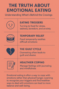 - Busy Lifestyles: When you’re rushed all day, you might not have time to process feelings, so food becomes a substitute for dealing with what’s going on.