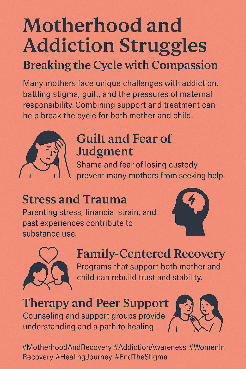 - Past Trauma: Many mothers with addiction issues have histories of trauma, such as childhood abuse, neglect, or untreated mental illness, that resurface with the pressures of parenting.