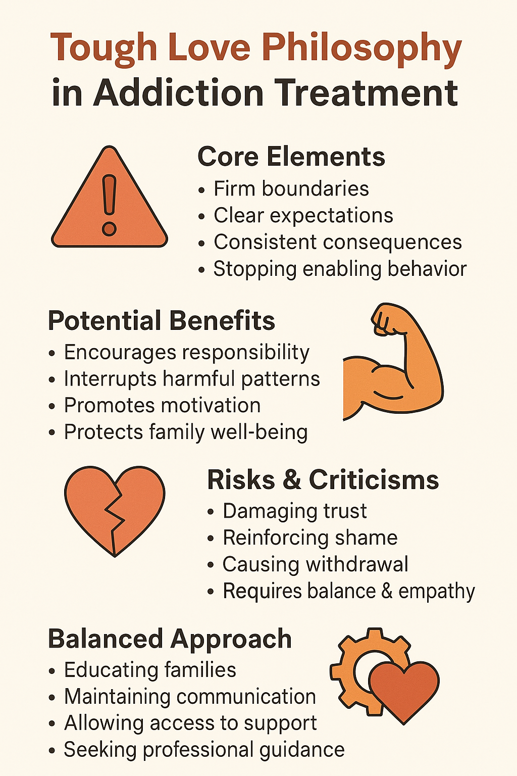 - Why: Tough love is not about punishment but about setting limits to promote recovery.