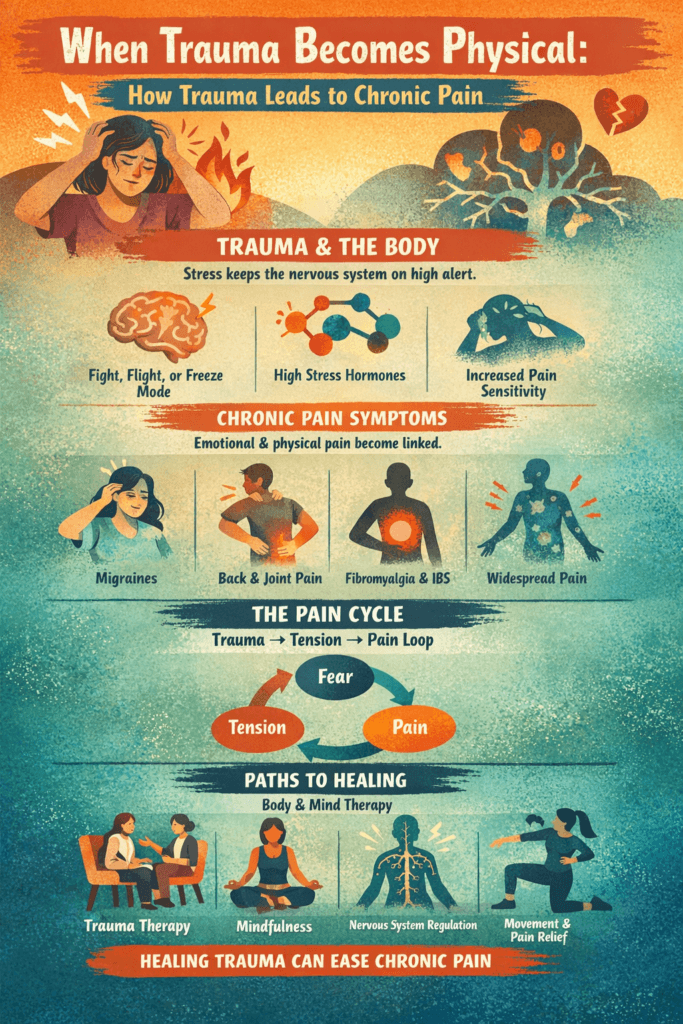 Yes. Trauma can keep the nervous system stuck in a constant stress response, which changes how the brain processes pain signals and can lead to long-term physical discomfort.