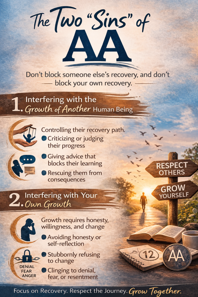 When AA talks about these “two sins,” it is essentially warning against anything that blocks that growth—either in ourselves or in others.