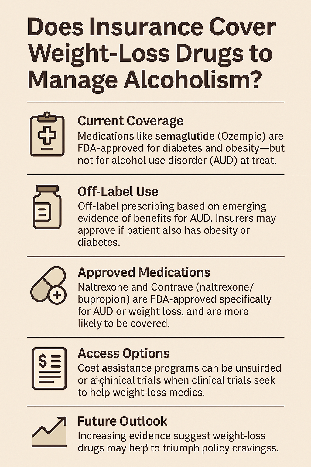 Weight loss medications, while designed for obesity, are being explored for managing alcoholism, particularly for individuals facing both alcohol use disorder and weight issues. These medications may help reduce cravings and improve impulse control, but their use raises ethical concerns, such as dependency and misuse. Effective treatment requires more than medication, with self-management strategies, family support, and community resources playing key roles. These combined approaches help individuals navigate the complexities of alcoholism and weight management, promoting long-term recovery and well-being.