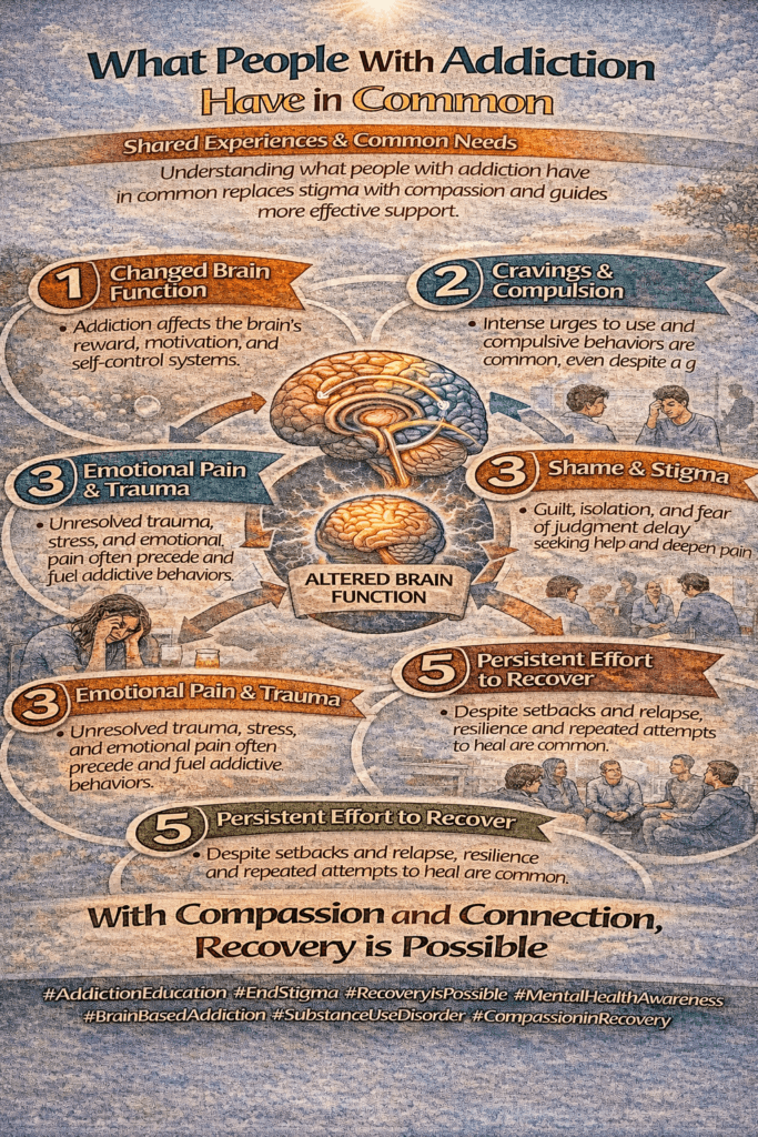 One thing I’ve seen over and over is that addiction isn’t just about what someone takes or does, it’s about how they feel inside. Here’s what usually pops up: