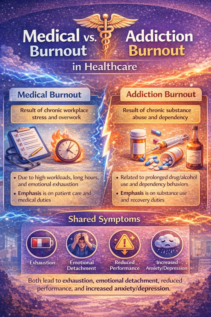 I’ve seen people mix up medical burnout and addiction burnout, but they’re miles apart when you get into the details. Here are the main ways they differ: