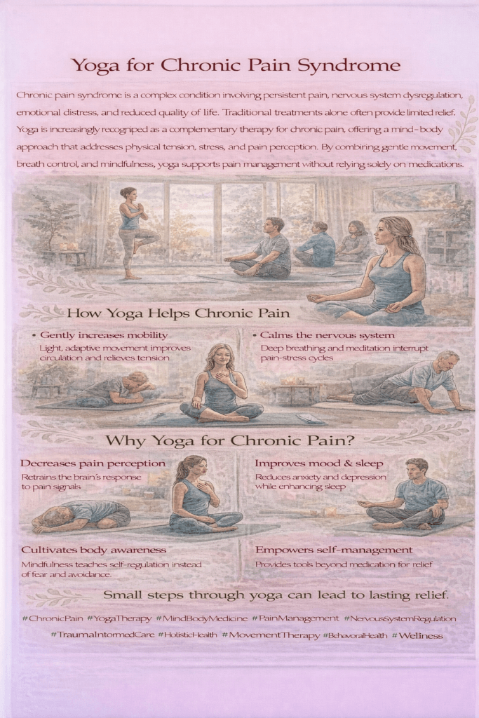 Yoga provides a holistic approach to pain management, addressing not just physical pain but also emotional, mental, and spiritual well-being. When integrated with traditional treatments for chronic pain, yoga can enhance their effectiveness and contribute to better overall health outcomes.