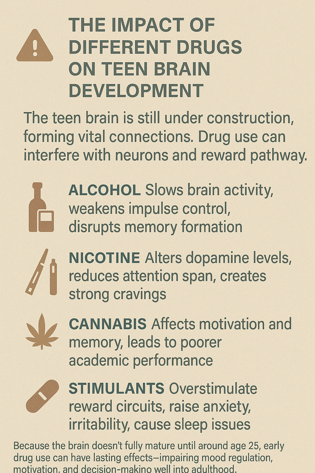 - Greater Neuroplasticity: The adolescent brain is highly adaptable, meaning substances can more easily rewire brain circuits in harmful ways.